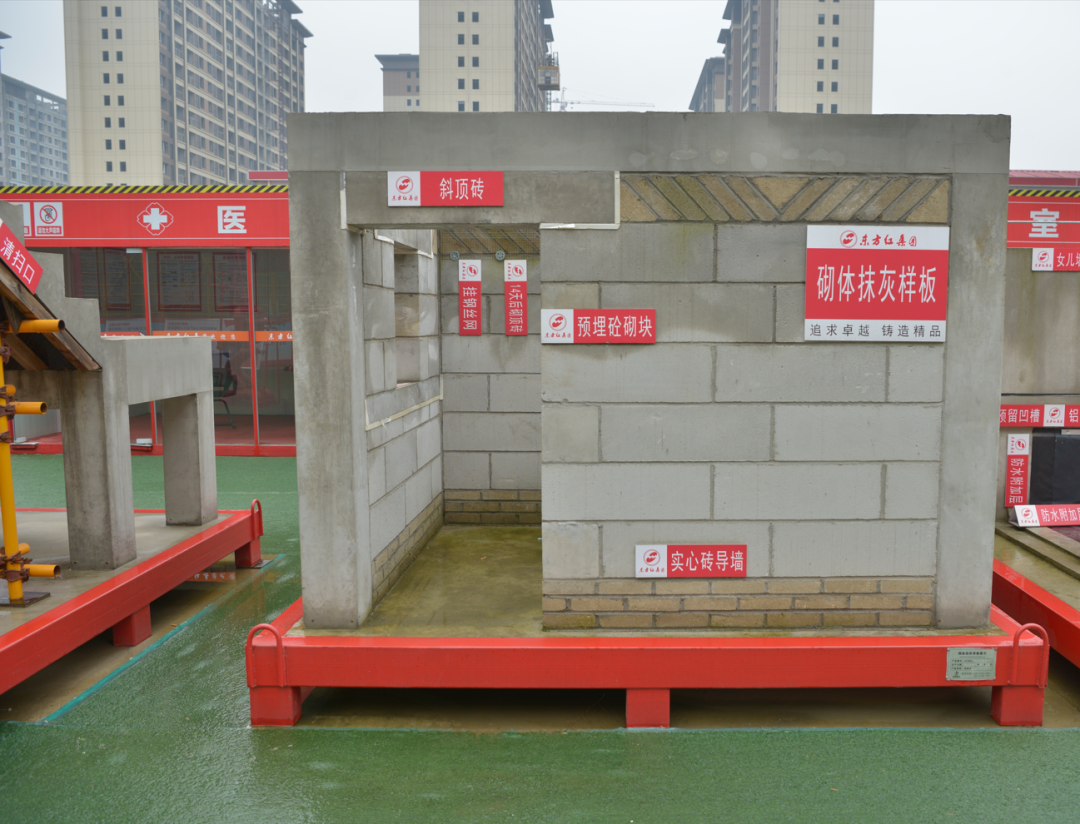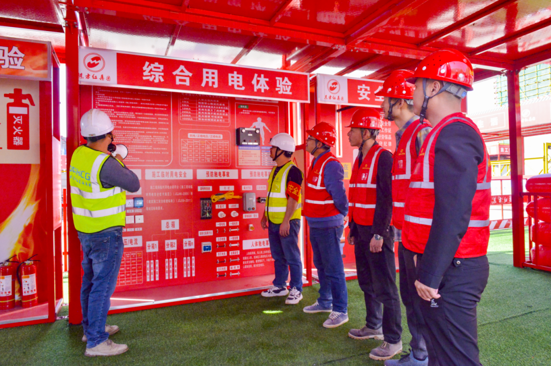 四、嚴(yán)格安全標(biāo)準(zhǔn)化管理實(shí)踐,全面提升安全生產(chǎn)全過程管理。項(xiàng)目嚴(yán)格執(zhí)行公司安全生產(chǎn)標(biāo)準(zhǔn)化圖集工作要求,創(chuàng)建“高標(biāo)準(zhǔn)、高效率、高起點(diǎn)”的安全文明施工現(xiàn)場,現(xiàn)場材料嚴(yán)格按總平面分類、分區(qū)規(guī)范布置整齊、標(biāo)識清晰,全面推廣工具化、標(biāo)準(zhǔn)化設(shè)施,項(xiàng)目部通過班前教育講臺(tái)、宣傳欄、VR安全體驗(yàn)館等多種形式開展安全教育,切實(shí)提高施工人員的安全責(zé)任意識。項(xiàng)目還設(shè)置了移動(dòng)樣板區(qū),通過將標(biāo)準(zhǔn)化施工流程應(yīng)用到實(shí)體交付工程中,做到施工有參照,交付有標(biāo)準(zhǔn)。