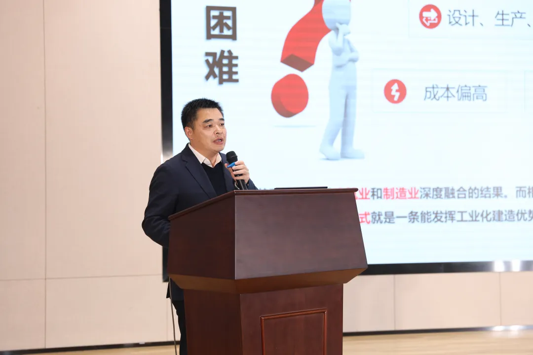 會上,湖南東方紅集團(tuán)副總經(jīng)理、建筑公司總經(jīng)理鄭智洪以《裝配式建筑全生命周期智能建造的探索》為主題進(jìn)行演講,深刻闡述了東方紅產(chǎn)業(yè)轉(zhuǎn)型+數(shù)字化轉(zhuǎn)型的發(fā)展歷程與對高質(zhì)量發(fā)展的思考,并從設(shè)計(jì)、生產(chǎn)、施工、運(yùn)維四個(gè)階段分享了東方紅近年來在裝配式建筑項(xiàng)目全生命周智能建造的應(yīng)用以及典型項(xiàng)目實(shí)施案例。