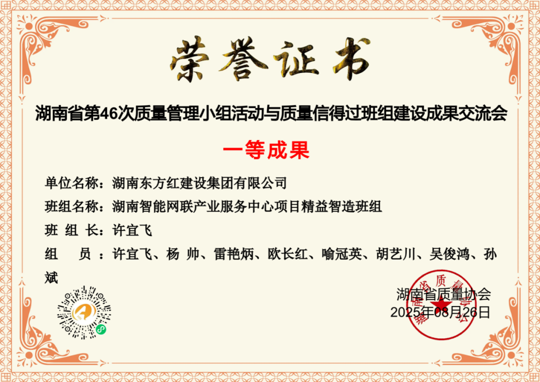 金秋時(shí)節(jié),碩果飄香,湖南東方紅建設(shè)集團(tuán)有限公司再傳捷報(bào)!在近期各類權(quán)威賽事與科研項(xiàng)目申報(bào)中,公司憑借卓越的技術(shù)實(shí)力、精益求精的質(zhì)量追求以及創(chuàng)新突破的科研精神,一舉斬獲多項(xiàng)榮譽(yù),實(shí)現(xiàn)了技術(shù)與質(zhì)量成果的雙重豐收,為集團(tuán)的高質(zhì)量發(fā)展再添濃墨重彩的一筆!