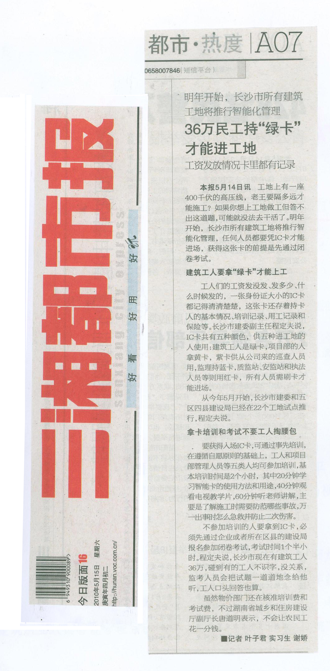 三湘都市報(bào)刊登《36萬(wàn)民工持“綠卡”才能進(jìn)工地》