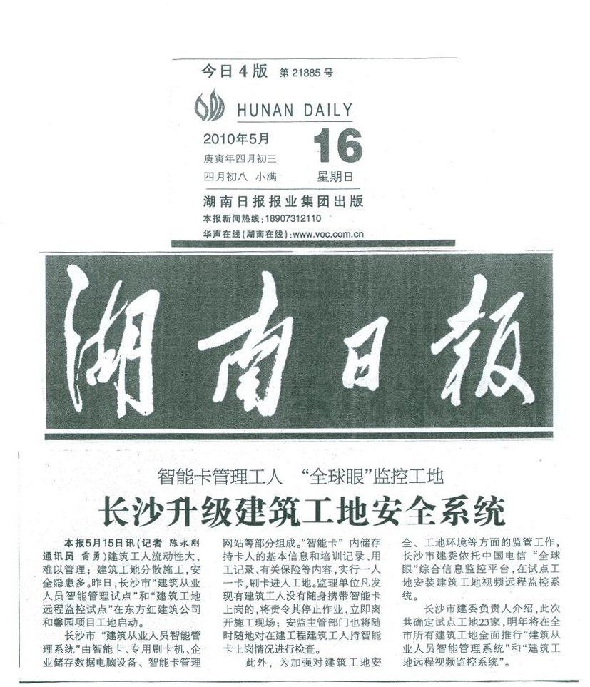 長(zhǎng)沙晚報(bào)刊登“建筑業(yè)農(nóng)民工刷卡上下班”