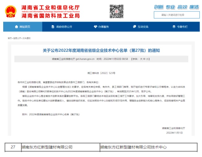 喜報 | 湖南東方紅新型建材有限公司獲評“省級企業(yè)技術(shù)中心”