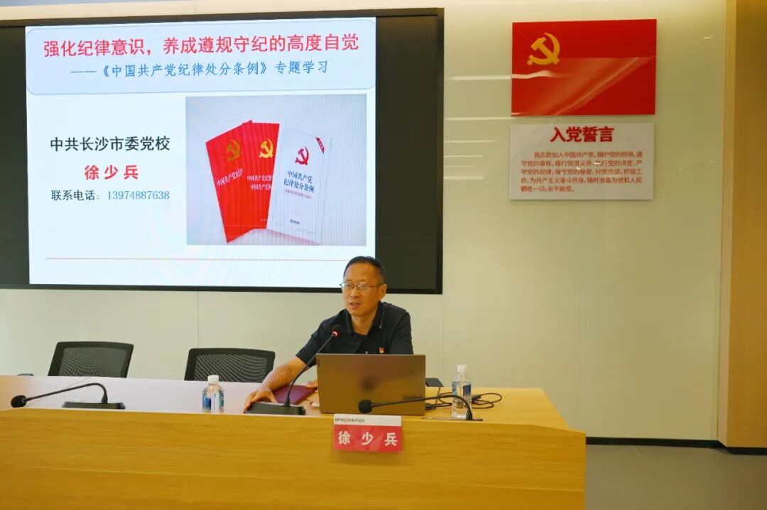 會(huì)議特邀中共長(zhǎng)沙市委黨校徐少兵教授作專(zhuān)題授課。徐教授對(duì)國(guó)內(nèi)、國(guó)際形勢(shì)進(jìn)行了分享,并通過(guò)《強(qiáng)化紀(jì)律意識(shí),養(yǎng)成遵規(guī)守紀(jì)的高度自覺(jué)》為主題,圍繞《中國(guó)共產(chǎn)黨紀(jì)律處分條例》修訂的重大意義、核心要義與實(shí)踐要求,深入剖析紀(jì)律建設(shè)與作風(fēng)建設(shè)的內(nèi)在聯(lián)系,全體黨員干部深刻領(lǐng)會(huì)《中國(guó)共產(chǎn)黨紀(jì)律處分條例》精神實(shí)質(zhì),將紀(jì)律要求內(nèi)化于心、外化于行,時(shí)刻繃緊紀(jì)律之弦,增強(qiáng)自我凈化、自我完善、自我革新、自我提高能力,切實(shí)做到“心有所畏、言有所戒、行有所止”。